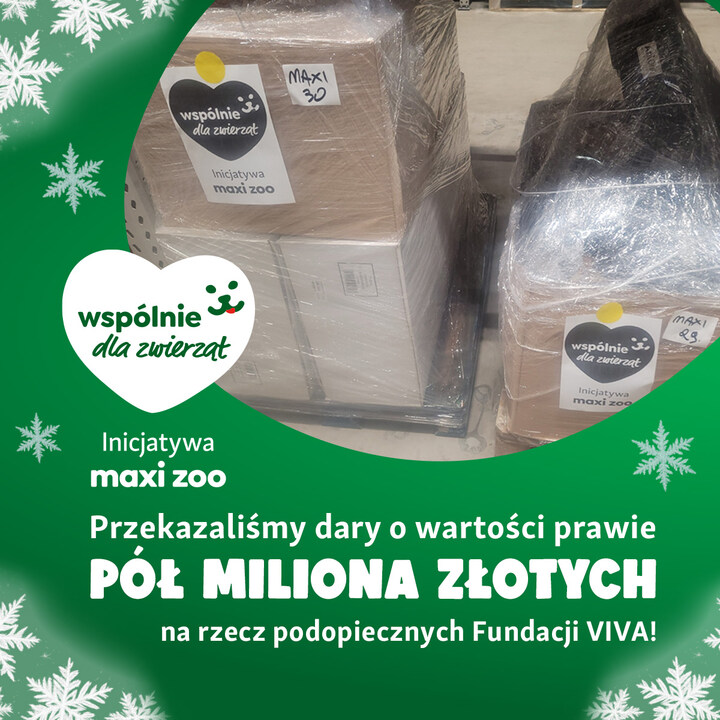 – Od lat powtarzamy, że zwierzęta wzbogacają nasze życie dzień po dniu i to nie jest dla nas pusty slogan. Współpraca z Fundacją Viva! to przykład partnerstwa opartego na zaufaniu i wspólnych wartościach. Tegoroczna, grudniowa darowizna to ponad 16 tysięcy produktów o wartości 430 tysięcy złotych, które trafią tam, gdzie są naprawdę potrzebne. Wierzymy, że jako firma mamy możliwość by pomagać i chcemy z niej korzystać, szczególnie wtedy, gdy skala potrzeb jest bardzo duża. – mówi Wojciech Kamiński, Dyrektor Zarządzający Maxi Zoo Polska.